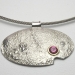 A collection of hangers combining media to create an elegant, yet raw jewellery. "Oval Ruby" combines a reticulated silver hanger, a laboratory created ruby (not synthetic), set in 14ct gold, which hangs from a rope of steel.